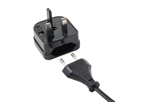 Travel adapter (UK version, 2-pin), EU (CEE 7/16) --> Type G (BS 1363)