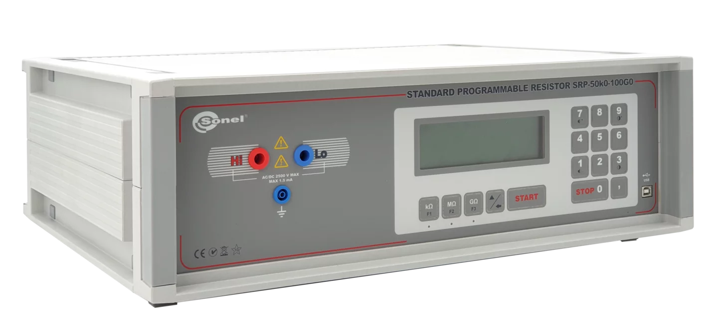 The SRP-50k0-100G0 calibrator is a source of high resistance, used as a standard in calibration and tests of analogue and digital insulation resistance meters.